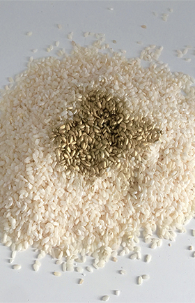De la reflexión social y antropológica ante el hábitat (las ramas blancas) representando la creación de entornos y espacios de vida dignos, y las necesidades primarias, alimento y educación (arroz dorado) con la reflexión ante los alimentos transgénicos y propuestas de erradicación del hambre.